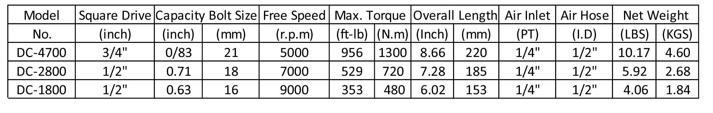 1″AIR IMPACT WRENCH DC-4700